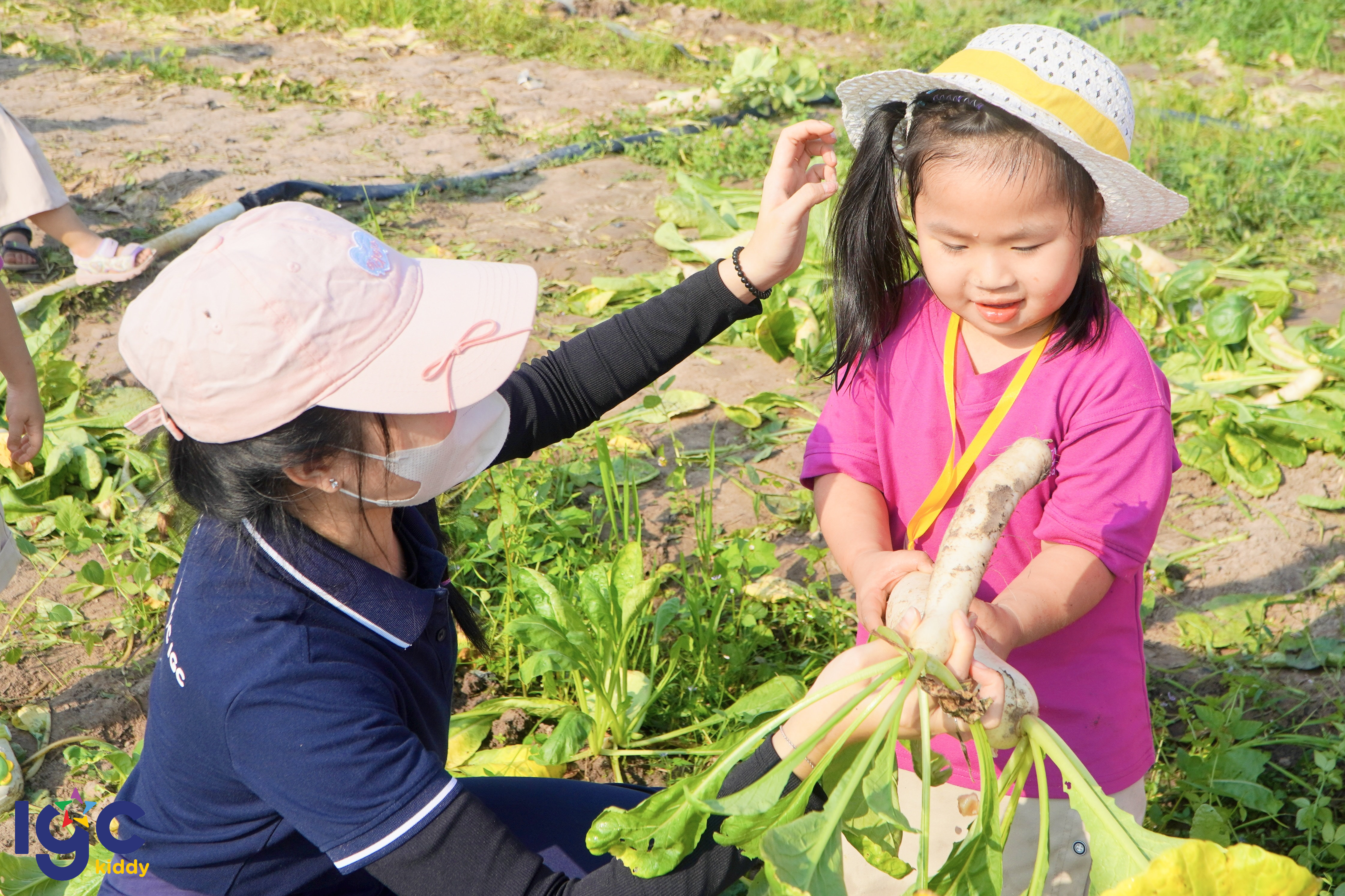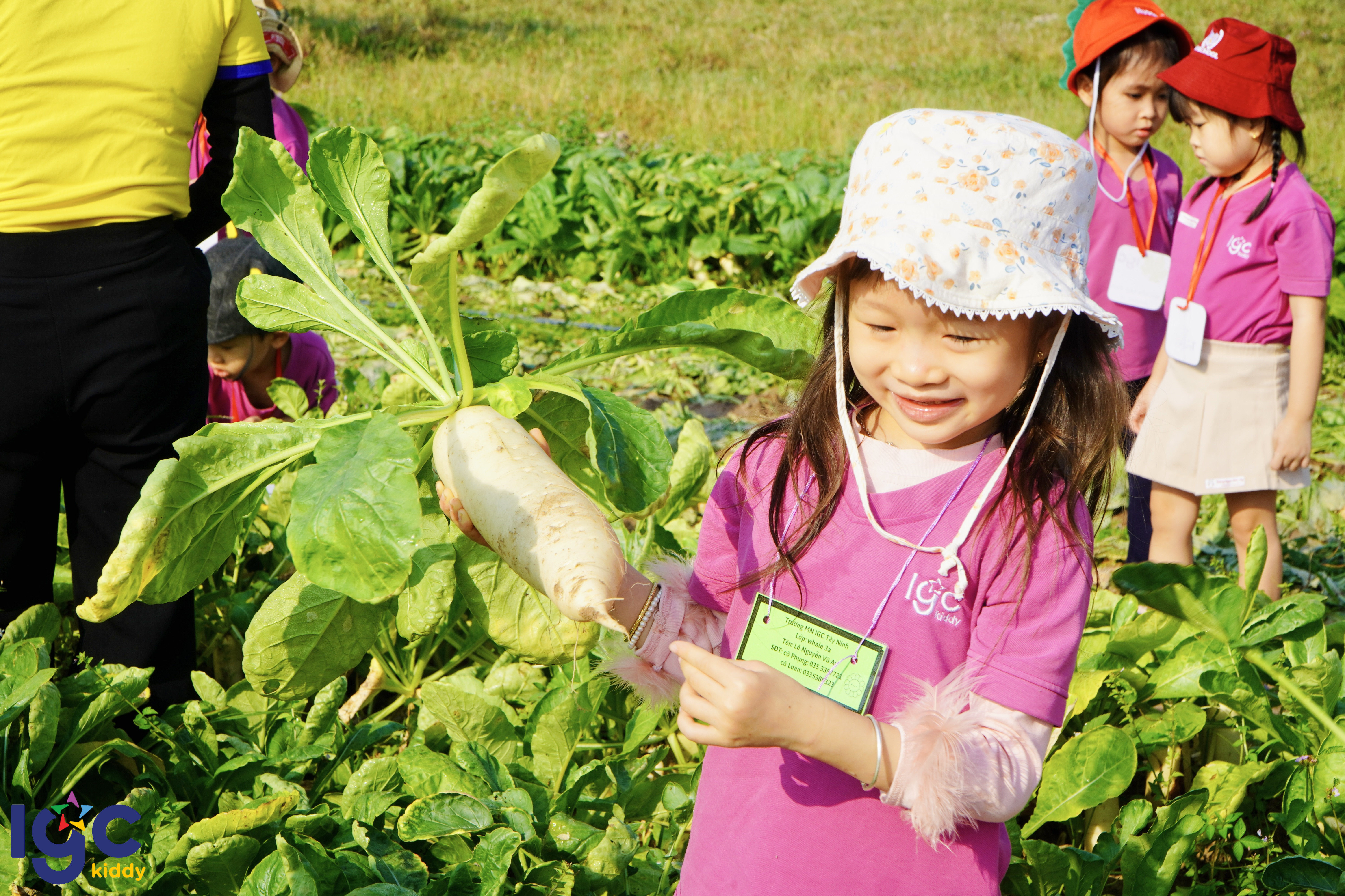 Trong hành trình giáo dục trải nghiệm, IGC Kiddy Tây Ninh luôn chú trọng tạo cơ hội để trẻ được học tập thông qua thực tế. Chuyến dã ngoại trải nghiệm tại cánh đồng cải xanh mát đã mang đến cho các bạn nhỏ một ngày học tập ngoài trời đầy hứng khởi và ý nghĩa. Trong không khí rộn ràng của chuyến đi, các em bé IGC Kiddy được hoá thân thành những “nông dân nhí” thực thụ. Các con được trực tiếp quan sát quá trình trồng trọt, chạm tay vào đất, tự tay nhổ từng củ cải trắng và mang thành quả của mình về để chế biến những món ăn đơn giản, gần gũi. Đây là cơ hội để trẻ hiểu hơn về nguồn gốc thực phẩm và trân trọng giá trị của lao động. Dù gương mặt lấm tấm mồ hôi, đôi bàn tay nhỏ xinh vương đầy bùn đất, nhưng ánh mắt các con luôn ánh lên niềm vui và sự háo hức khi hoàn thành “nhiệm vụ” của mình. Mỗi trải nghiệm đều trở thành một bài học sinh động, giúp trẻ phát triển kỹ năng quan sát, tăng cường vận động thể chất và hình thành tinh thần tự lập ngay từ những năm đầu đời. Không chỉ dừng lại ở hoạt động vui chơi, chuyến dã ngoại còn góp phần nuôi dưỡng tình yêu thiên nhiên, giúp trẻ hiểu hơn về môi trường sống xung quanh và giá trị của những gì mình tạo ra. Thông qua các hoạt động trải nghiệm thực tế, IGC Kiddy Tây Ninh mong muốn xây dựng nền tảng vững chắc cho sự phát triển toàn diện của trẻ cả về thể chất, trí tuệ và cảm xúc. Với IGC Kiddy Tây Ninh, mỗi ngày đến trường là một ngày vui, mỗi chuyến đi là một hành trình khám phá đầy ắp kỷ niệm tuổi thơ đáng nhớ, đồng hành cùng trẻ trên con đường trưởng thành bằng những trải nghiệm học tập gần gũi và ý nghĩa.