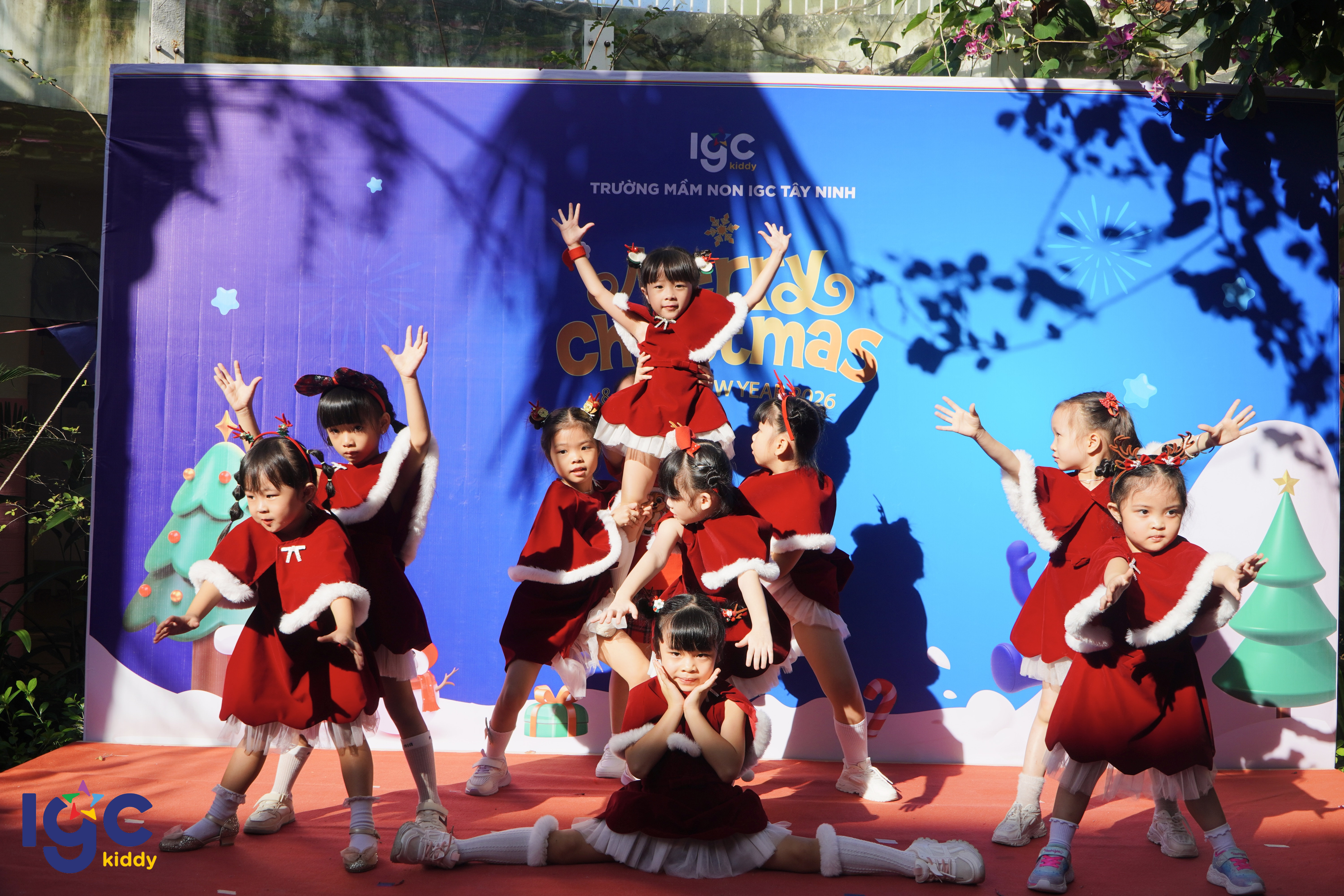 Giáng Sinh 2025 đã chính thức diễn ra tại Trường Mầm non IGC Kiddy Tây Ninh, mang đến không khí lễ hội ấm áp cùng những nụ cười rạng rỡ và ánh mắt háo hức của các bạn nhỏ.