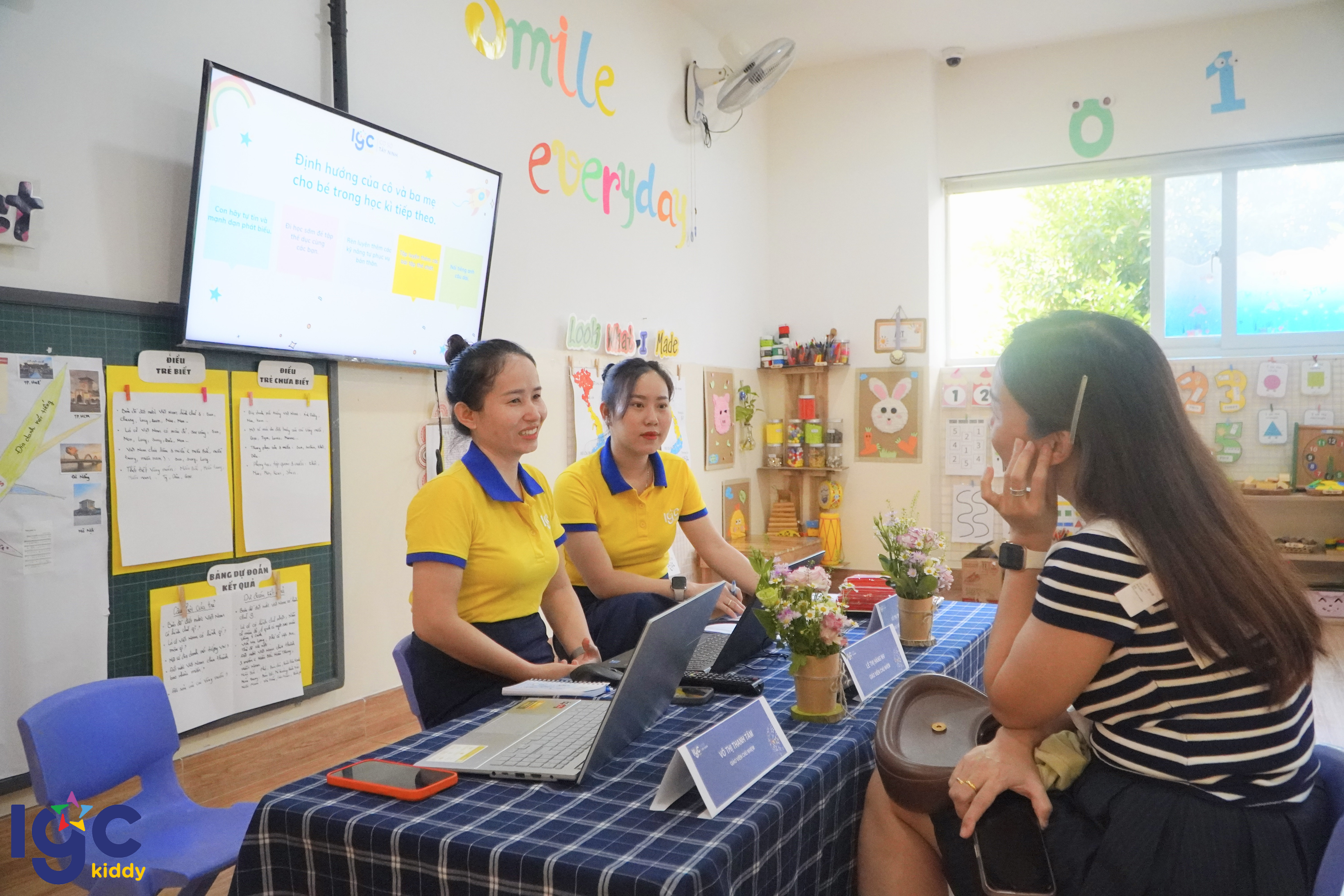 Thông qua các buổi họp phụ huynh, IGC Kiddy Tây Ninh mong muốn giúp ba mẹ hiểu rõ: - Con đang tiến bộ như thế nào mỗi ngày - Trẻ cần được hỗ trợ ở những kỹ năng nào - Gia đình có thể phối hợp cùng nhà trường ra sao để tạo nên môi trường học tập an toàn, tích cực và hạnh phúc Nhà trường tin rằng khi gia đình và nhà trường cùng chung tiếng nói, mỗi em bé sẽ luôn được yêu thương, thấu hiểu và phát triển đúng với tiềm năng của mình. Trường mầm non song ngữ IGC Kiddy Tây Ninh – Lựa chọn tin cậy của phụ huynh Hệ thống trường mầm non IGC Kiddy hiện nhận được sự tin yêu đồng hành của hơn 2000 phụ huynh tại TP.HCM, Đồng Nai, Vĩnh Long và Tây Ninh.