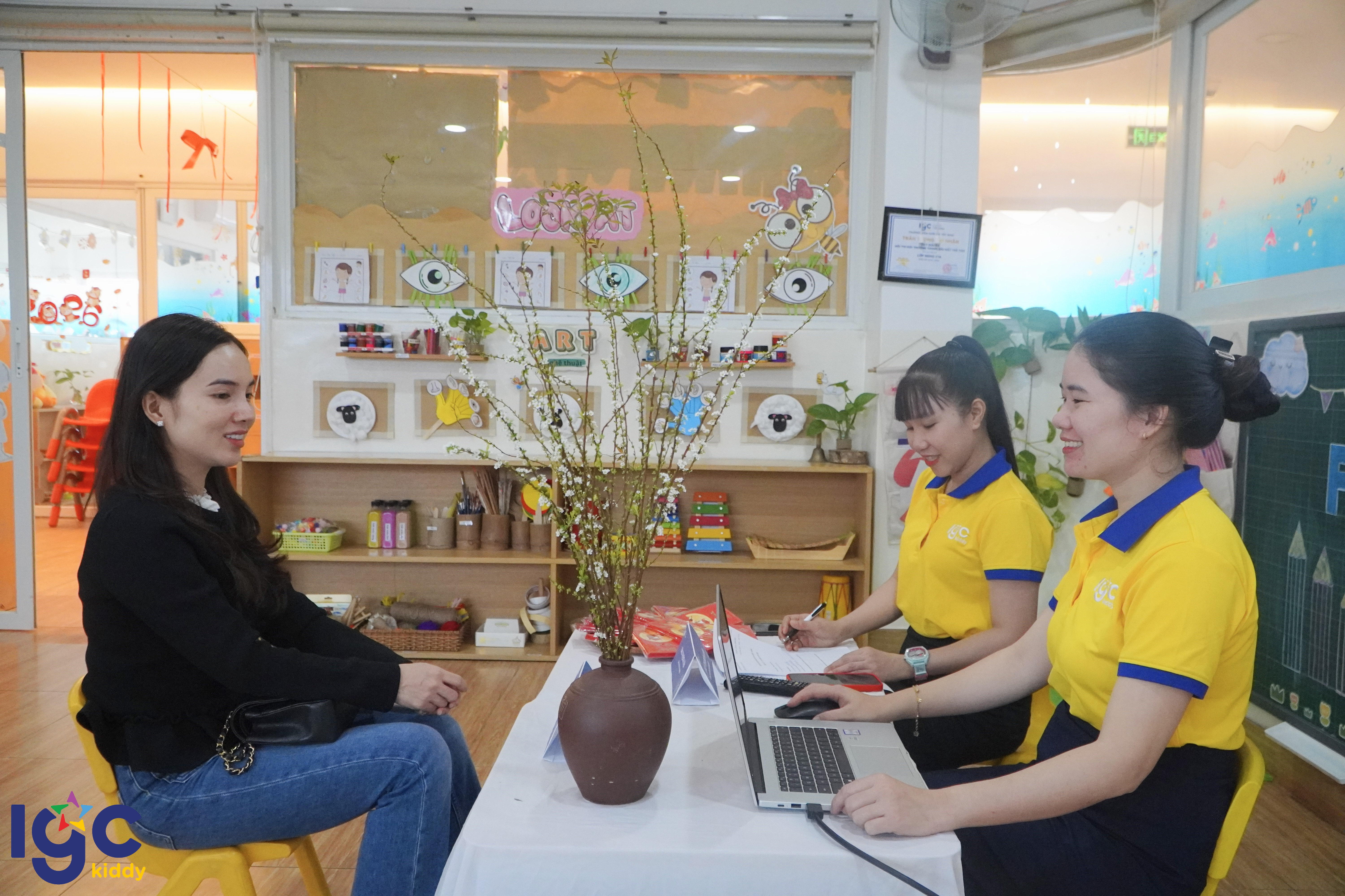 Buổi họp phụ huynh – nơi ba mẹ hiểu con sâu hơn mỗi ngày Trong mỗi buổi họp phụ huynh, đội ngũ giáo viên và chuyên viên giáo dục IGC Kiddy Tây Ninh sẽ cùng ba mẹ: Trao đổi chi tiết về thói quen sinh hoạt, cảm xúc và khả năng học tập của trẻ Lắng nghe chia sẻ từ gia đình về tính cách, điểm mạnh và những nội dung trẻ cần hỗ trợ thêm Kết hợp quan sát thực tế tại lớp để đưa ra đánh giá sát sao, khách quan về quá trình phát triển của từng bé Qua đó, nhà trường và phụ huynh cùng xây dựng lộ trình giáo dục phù hợp, cá nhân hóa cho mỗi trẻ, giúp bé phát triển tự nhiên, tự tin và hạnh phúc.