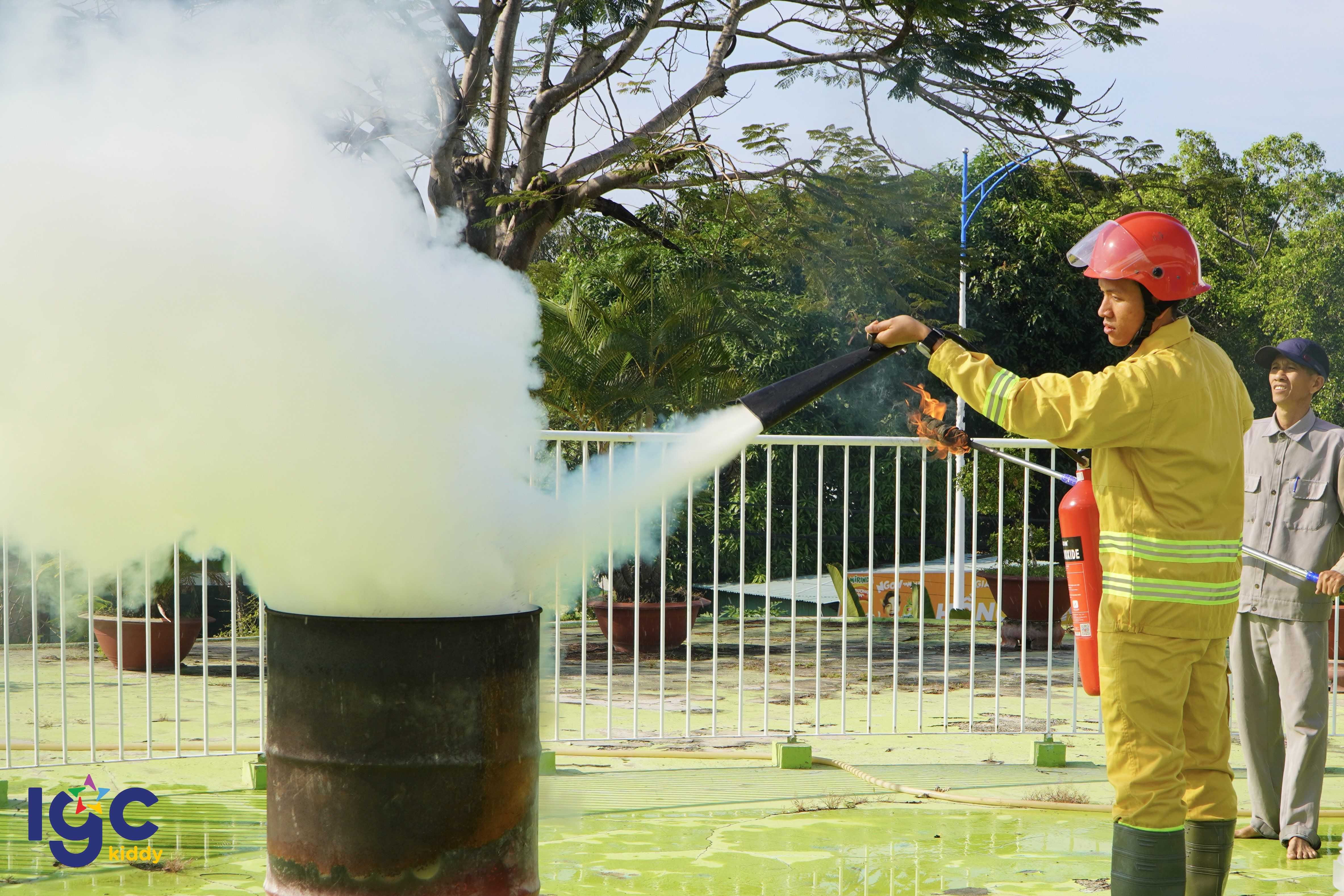 Diễn tập phòng cháy chữa cháy tại IGC Kiddy Tây Ninh Ngày 10/01/2025, IGC Kiddy Tây Ninh đã tổ chức buổi diễn tập Phòng cháy Chữa cháy (PCCC) với sự tham gia của toàn thể học sinh, giáo viên và nhân viên nhà trường. Buổi diễn tập được xây dựng theo tình huống giả định sát với thực tế, đảm bảo tính an toàn nhưng vẫn giúp trẻ làm quen với các tình huống khẩn cấp có thể xảy ra. Trong suốt quá trình diễn tập, các bé được hướng dẫn và trực tiếp thực hành những kỹ năng thoát hiểm quan trọng dưới sự quan sát, hỗ trợ chặt chẽ của giáo viên. Rèn luyện kỹ năng thoát hiểm cho trẻ từ sớm Dù tình huống diễn tập diễn ra bất ngờ, các bạn nhỏ IGC Kiddy Tây Ninh vẫn giữ được sự bình tĩnh, nghiêm túc lắng nghe hiệu lệnh của giáo viên và nhanh chóng di chuyển đến khu vực an toàn theo đúng hướng dẫn. Những kỹ năng quan trọng như: - Dùng khăn ướt che mũi và miệng - Di chuyển khom người để tránh khói - Men theo tường để tìm lối thoát hiểm đã được các bé thực hiện khá thành thạo, cho thấy hiệu quả từ việc lồng ghép giáo dục kỹ năng sống trong chương trình học mầm non tại trường.