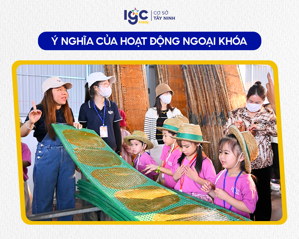 Bên cạnh tham quan thực tế, Trường Mầm Non IGC Tây Ninh còn tổ chức nhiều hoạt động ngoại khóa nội bộ như ngày hội thể thao, lễ hội văn hóa, chương trình biểu diễn nghệ thuật và các buổi trải nghiệm kỹ năng sống.